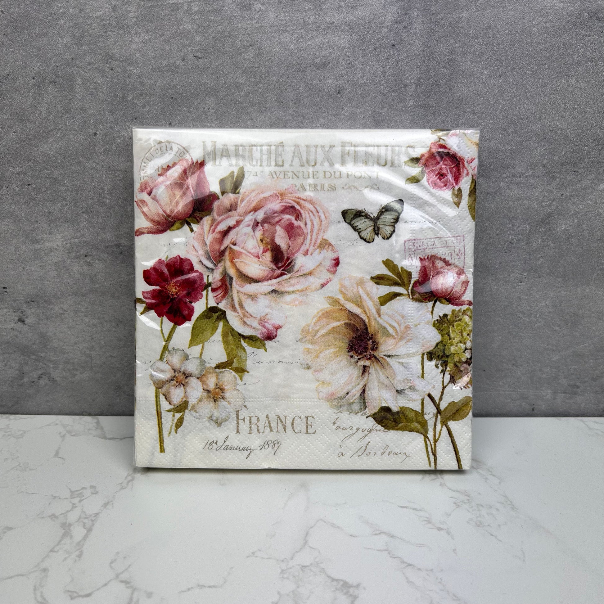 Servietten mit romantischem Blumen Motiv aus der Serie Marche aux Fleurs.