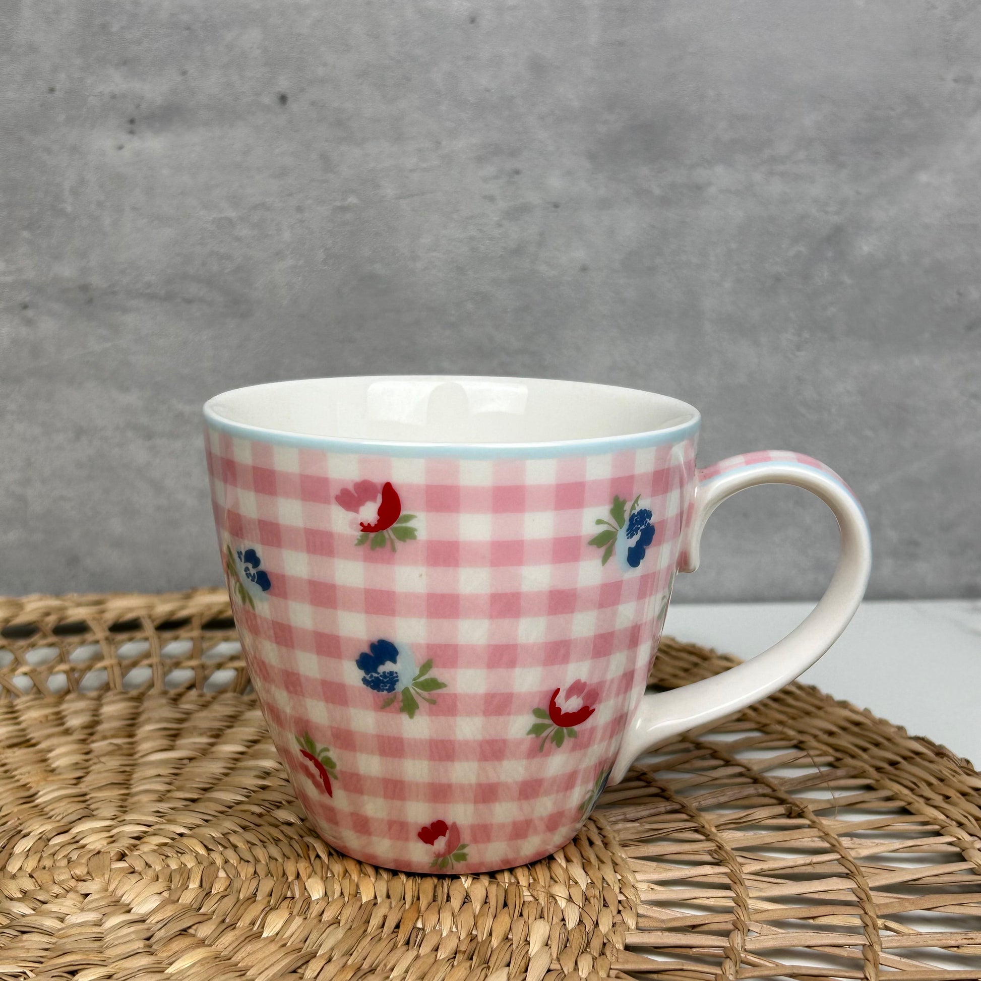 Die Greengate Tasse aus der Serie Viola besticht durch ihr elegantes rosa-weiß kariertes Design mit zarten Blümchen. Gefertigt aus hochwertigem Porzellan, bietet sie bei 8,5 cm Höhe und 10 cm Durchmesser ein Fassungsvermögen von 350 ml – ideal für Kaffee oder Tee. Die Tasse ist spülmaschinen- und mikrowellengeeignet, was hohe Alltagstauglichkeit garantiert. Von angesehenen dänischen Marke GreenGate vereint sie traditionelles Design mit moderner Funktionalität.